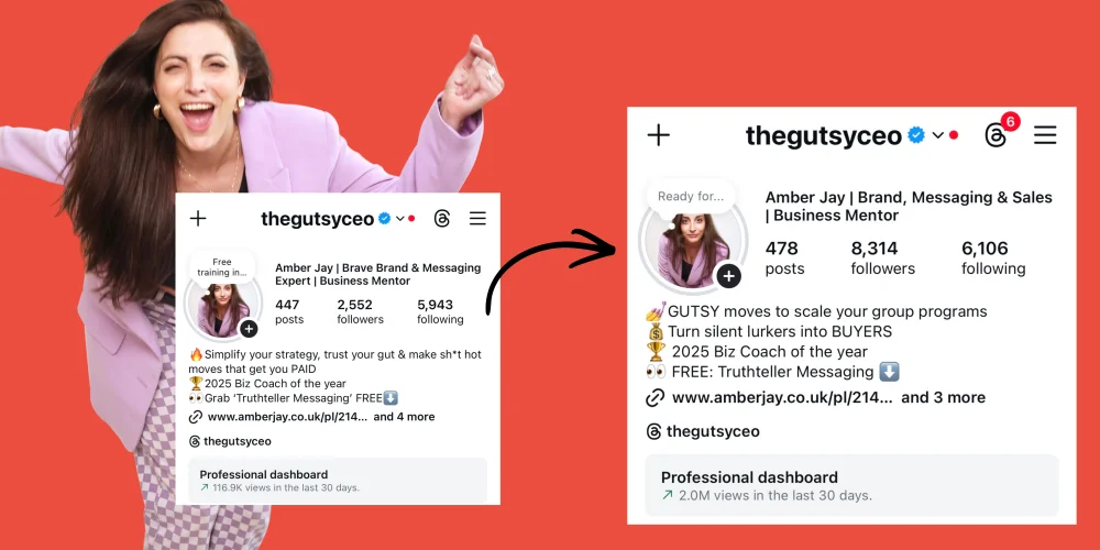 I’m rebelling against the slow, gruelling grind or the 'post 3x a day' hustle bros (I've never posted 3x a day and I never intend to). We focus exclusively on Gutsy 10x Moves - the high-leverage strategic shifts that explode your revenue and move you from the exhaustion of 1:1s into high-impact groups. We prioritise bravery over busy work, making your next six-figure level inevitable.